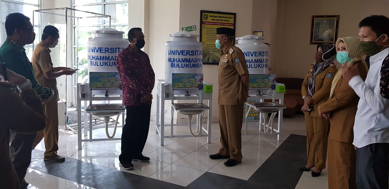 Selasa (21/4), Rektor UM Bulukumba, Drs Jumase Basra, MSi, menyerahkan secara simbolis tiga unit wastafel portabel kepada Bupati Bulukumba, Andi Sukri Sappewali. Wastafel tersebut diserahkan kepada Pemda Bulukumba untuk dipasang di fasilitas umum. Apresiasi disampaikan oleh Bupati Bulukumba atas bantuan